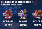 第三节比赛中,转播方列出尼克斯主场麦迪逊广场花园球馆传奇球星的表现。