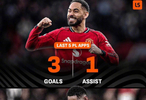 根据LiveScore的统计,库尼亚在最近5场英超联赛里贡献了3球1助,这个参与进球数与他代表曼联出战的前16场英超联赛相同。