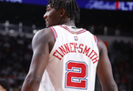 上半场比赛,火箭球员芬尼·史密斯进攻端毫无状态,出战7分29秒,三分3中0,除了1犯规,数据栏皆是0。