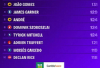 3.若昂-戈麦斯(狼队):131次