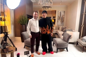 英国社交媒体上有个热门梗图叫 “小学六年级迪斯科新手套装”,包含一件下摆有一圈火焰图案的黑色衬衫、一双草坪训练鞋,以及一头竖起的尖刺发型,当恩佐这次接受采访和记者本・雅各布斯合影时,他身上穿的衬衫几乎和上述梗图里的火焰衬衫一模一样,网友们随即展开了搞笑对比。