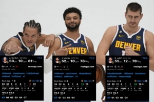 据统计,本赛季至今穆雷、阿隆·戈登和约基奇都曾做到过单场至少50分且真实命中率75%+!