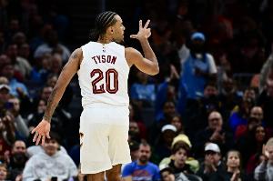 第三节比赛,骑士以44-19净胜马刺25分,其中,杰伦·泰森单节16分。