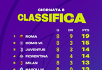 【女足积分榜】 2025-26赛季#意甲# 女足联赛第八轮积分榜。💪🏻#sempremilan#