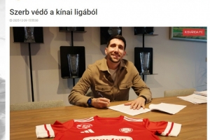 匈牙利甲级联赛球队小瓦尔道(Kisvárda FC)官方宣布与青岛海牛外援尼古拉·拉德曼诺瓦茨(Nikola Radmanovac)签约。拉德曼诺瓦茨2024年7月从俄罗斯联赛转投青岛海牛,为青岛海牛出场了42次。球员合同本月底到期自由身离队,转会将在明年初匈牙利窗口打开后完成。 ​​​