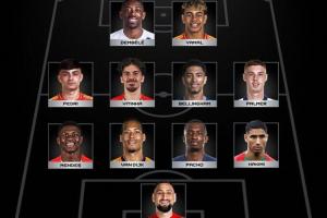 而对比11月FIFPRO(国际足球运动员协会)官方公布的男足年度最佳11人阵容,两边的差别只是将帕乔换成了姆巴佩。