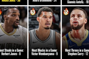 单场最多抢断:赫伯特·琼斯8次