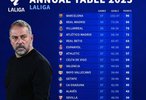 西甲2025年积分榜:巴萨96分第1,皇马86分第2,马竞72分第4