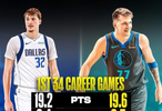 美媒对比了弗拉格和东契奇在菜鸟赛季球队前35场比赛的数据对比,巧合的是两人都在35场比赛里出战34场,数据如下: