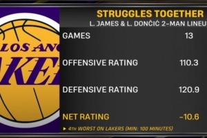 东契奇&詹姆斯同台13场