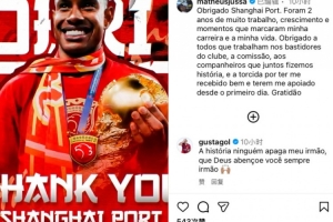 感谢上海海港,在这里的两年时光让我收获了成长,让我的事业和生活更加精彩。还要感谢一直在幕后支持我的朋友,球迷会,以及一同并肩作战、创造历史的队友和球迷们,从我来到这的第一天起,就给我热烈的欢迎和莫大的支持,感谢各位。