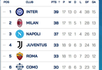 【意甲积分榜】 #意甲联赛# 2025-26赛季意甲联赛第18轮积分榜: