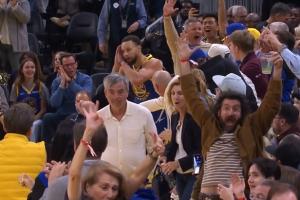 GIF-库里连续撤步 三分轰进 但好像踩线了!杀死比赛!