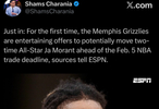 Shams:灰熊正首次听取关于莫兰特的交易报价,可能在交易截止日前将其送走。