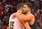 赛后,申京和约基奇拥抱寒暄。