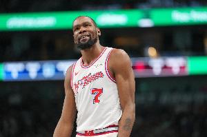 上半场比赛,杜兰特手感不是很好,他出战18分23秒,投篮13中3,三分2中0,罚球4中4,得到10分2篮板1助攻3抢断。