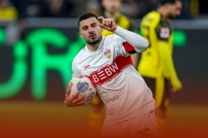 这名前锋此役上演帽子戏法,包办斯图加特全部进球,下半场补时阶段的进球帮助球队绝平多特,从客场带走三分。