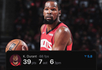 杜兰特NBA生涯常规赛总得分来到31544分,