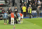 雷速体育1月17日讯 西甲第20轮,皇马主场对阵莱万特。赛前皇马热身时,姆巴佩被赫伊森放倒,随后倒地接受治疗。好在姆巴佩并无大碍,之后接着正常进行了热身训练。