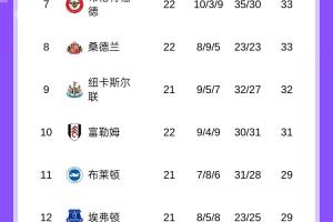 英超完整积分榜如图: