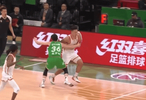 第四节比赛,贺希宁运球反击被鄢手骐一把拉住,裁判回看判普通犯规。