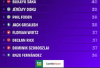 40次,萨卡(阿森纳)