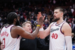 快船(19-23):哈登36分7板9助、米勒16分5板3助4断、祖巴茨14分12板1助、科林斯11分4板、邓恩10分5板4助、桑德斯8分3板1助、克里斯蒂6分2板1助、洛佩斯6分2板4断、巴图姆3分3板1助