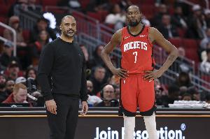 体育资讯1月21日讯 NBA常规赛,火箭主场111-106逆转马刺,赛后主教练乌度卡接受采访。