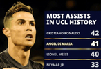 按UEFA官网 的“历史助攻榜”统计,维尼修斯以30助追平哈维,排名并列历史第7。目前前10如下: