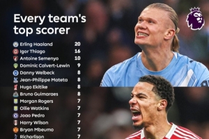 英超各队本赛季联赛射手王:曼城哈兰德 阿森纳约克雷斯特罗萨德
