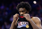 第三节,76人命中率骤降,全队单节17投仅4中拿到13分,单节净负对手17分,恩比德本节3中0没有得分。