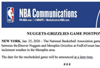 Shams:由于天气原因,今日掘金客场对阵灰熊的比赛已推迟。