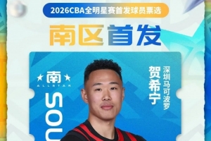 历经球迷朋友们21天的踊跃投票,综合媒体代表的投票结果,2026CBA全明星赛首发名单正式出炉!贺希宁成功入选南区首发阵容,感谢每一位投出宝贵一票的球迷和媒体老师。