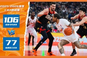 2025-2026赛季CBA联赛常规赛第二十轮展开较量,福建晋江文旅男篮客场挑战深圳马可波罗男篮,主队福建晋江文旅男篮虽开场展现拼劲,却未能抵挡住对手的强劲进攻火力,最终以77-106的比分落败。整场比赛主队虽在第三节尝试反扑追分,但前期分差过大且攻防端漏洞难补,遗憾未能实现逆转。四节比分分别是:18-21,15-25,25-21,19-29(福建晋江文旅男篮在前)。