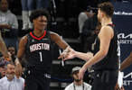直播吧1月27日讯 数据媒体StatMuse分享了一个数据:火箭队史此前无人做到赛季场均15+5+5且命中率50%,本赛季的申京和阿门有望做到。