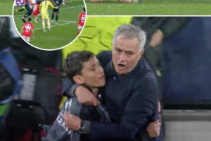 本场比赛第98分钟,门将特鲁宾破门为本菲卡取得关键的净胜球优势,穆里尼奥目睹“绝杀”后沿边线奔跑庆祝。