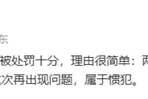 媒体人李璇:上海申花和天津津门虎被处罚十分,理由很简单:两个球队上次反赌扫黑的时候就已经被-6分起步了,这次再出现问题,属于惯犯。