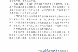 体育资讯01月29日讯 足协发布“假赌黑”整治处罚结果,原天津天海足球俱乐部球员,违背体育道德、丧失体育精神、为谋取不正当利益进行不正当交易;操控足球比赛,严重违背公平竞赛精神,引起恶劣社会影响,被终身禁赛。