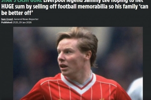 体育资讯1月30日讯 《太阳报》报道,前利物浦球星萨米·李希望通过出售他的足球纪念品获得10万英镑。