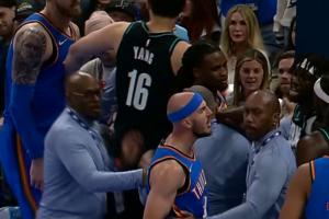 GIF-雷霆开拓者冲突 杨瀚森过来把哈滕劝走