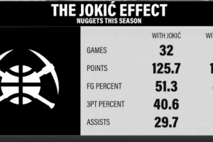 有约基奇 32场场均125.7分29.7助 命中率51.3% 三分命中率40.6%